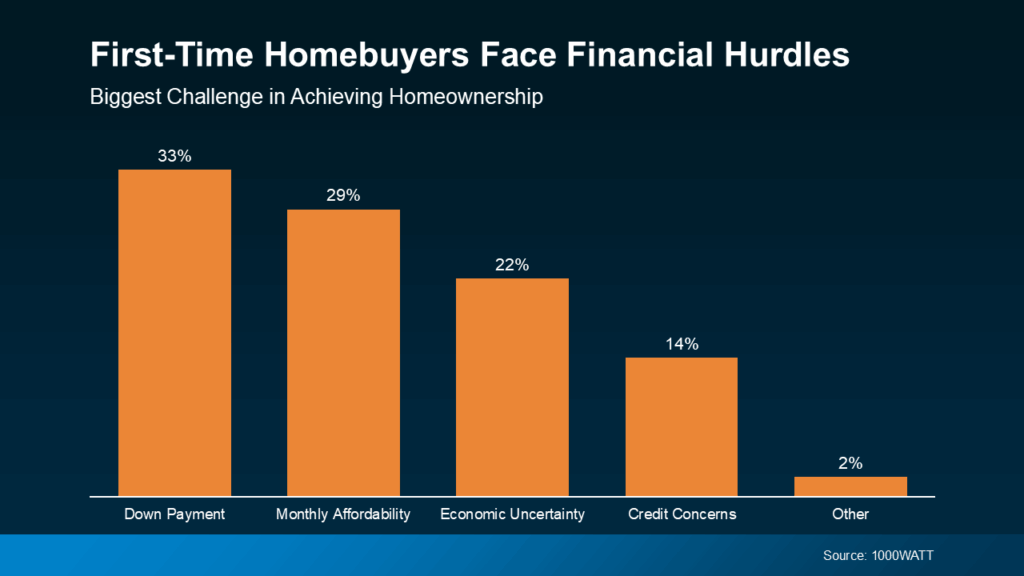 While the motivation to buy a home in Roseburg, OR, remains strong for many people, affordability is a real challenge today. According to a survey from 1000WATT, potential first-time buyers say their top two concerns are saving enough for their down payment and making the monthly mortgage payments work at today’s home prices and mortgage rates (see graph below):